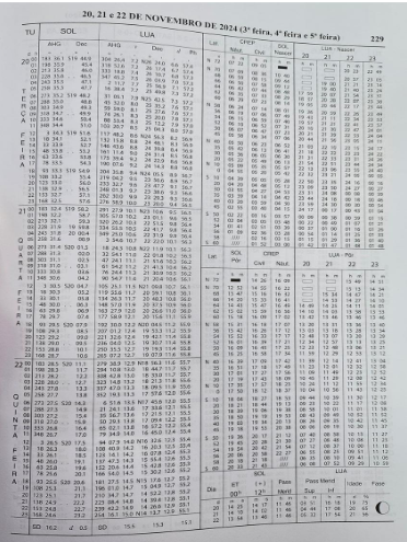 Um Capitão-Amador conduzindo o veleiro oceânico ALDEBARAN em sua travessia da Austrália para a Nova Zelândia, no dia 21 de novembro de 2024, estimou sua posição nas proximidades da passagem meridiana superior na latitude 36° 49’,8 S e longitude 173°19’,9 E. Com esses dados conhecidos e observando os dados do Almanaque Náutico (em anexo), indique a hora legal, aproximada, da passagem meridiana: