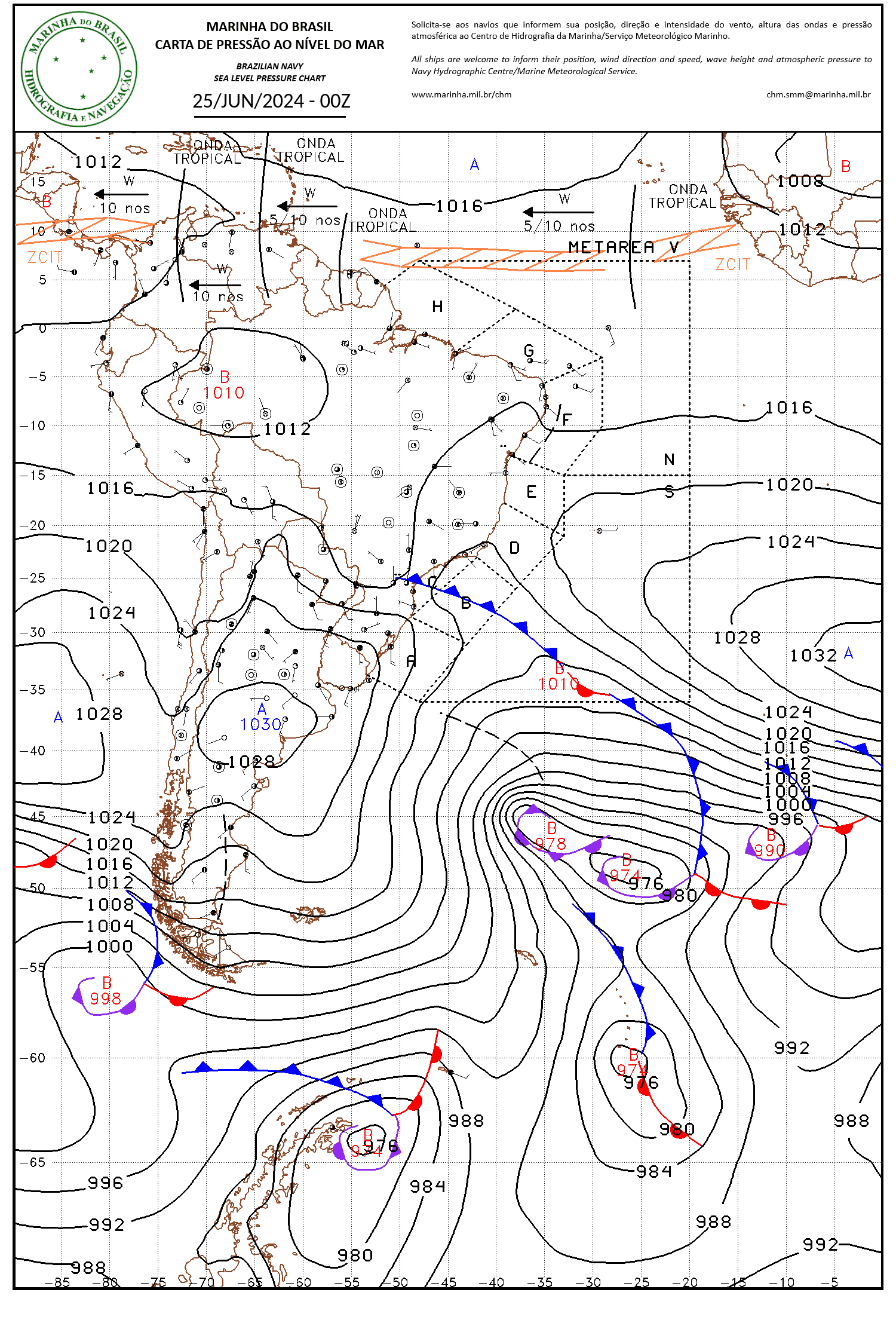 Ao analisar a carta sinótica abaixo, conclui-se corretamente que